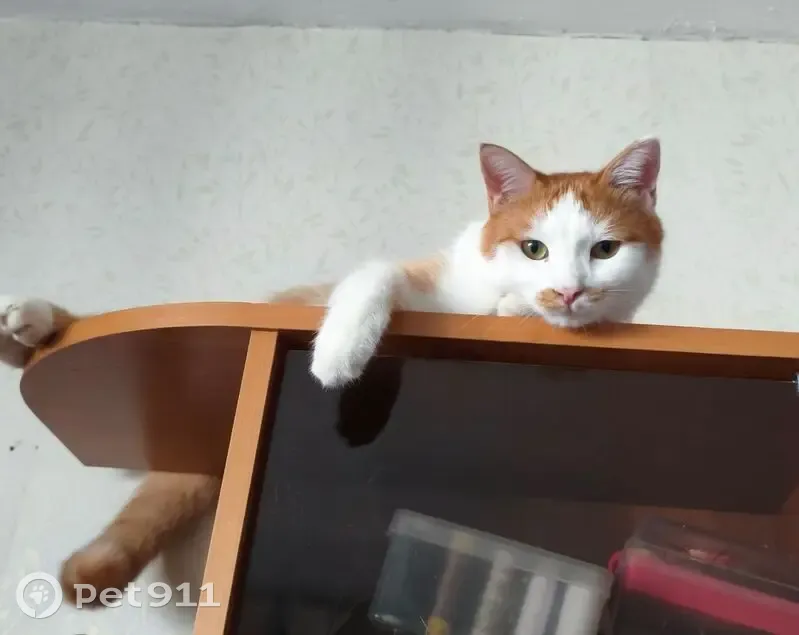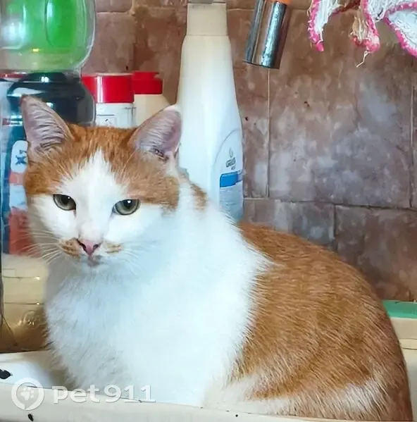 Бело-рыжий. Возраст 2 года. Кастрированный. Не умеет мяукать, "курлычет" как мама-кошка или котёнок. Правая передняя лапка чуть искривлена. Если стоит или сидит, то старается её приподнимать.