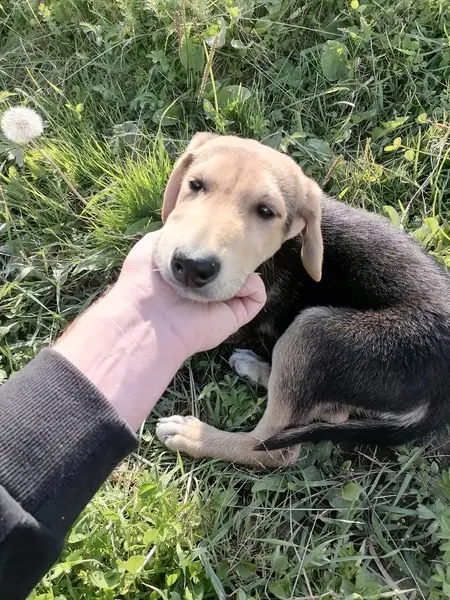 Появился во дворе вот такой песик, лежит у подъезда и не уходит. Собака не зафиксирована.