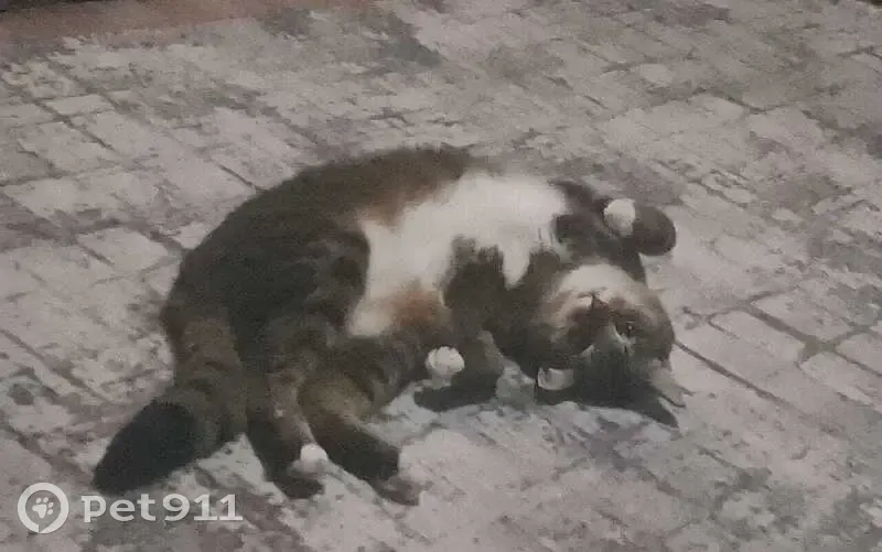 У кота окрас: черные полоски с примесью коричневого и серого и белый живот с горлом Кот не агрессивный Кот выпрыгнул из окна с 1 этажа примерно с 8:00-10:00 пропажу заметили в 10