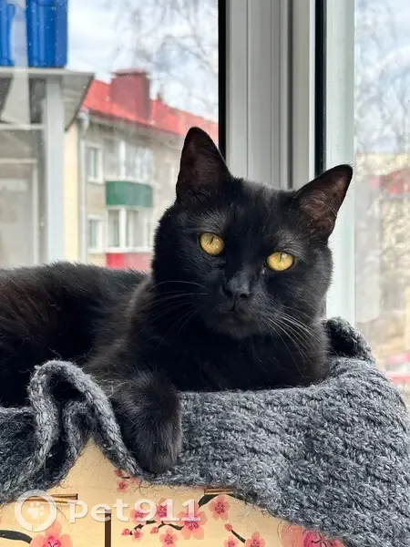Черный окрас с шоколадными лапками с обратной стороны и живот. Глаза яркие, желтые. Молодой-3 года. Телосложение шотландской кошки, не толстый. Небольшие залысины у ушей. Откликается на имя Сэм, или Кити. Пропал после адаптационных дней в саду №6 города Качканар. Ушел и не вернулся 23.07.25.
