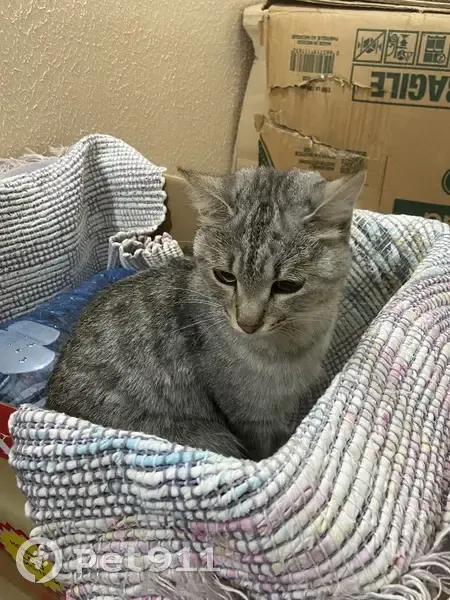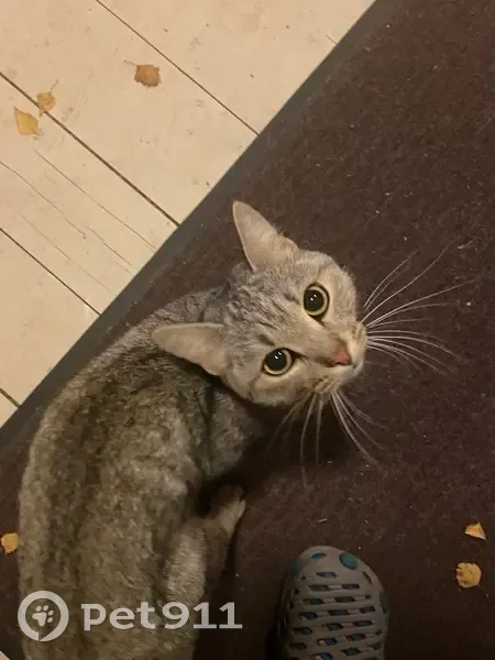 кошечка серого цвета с зелеными глазами, просится в дом, сидит у двери, видно домашняя. В руках сидит, мурчит, ласковая. Приходила иногда на участок погулять, теперь сидит мяукает у дверей. Ночи сейчас холодные, у себя оставить не можем, хозяин найдись пожалуйста