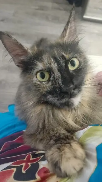 Спокойная и очень миниатюрная кошечка. Тактильная и ласковая, но находится в стрессовом состоянии(в данный момент находится в отдельной комнате). Когти были подстрижены, но уже отрасли. Свозила в ветеринарную клинику - взяли анализы на болезни(так как дома находятся ещё кошка и котёнок). По предложению примерно ~2 года.