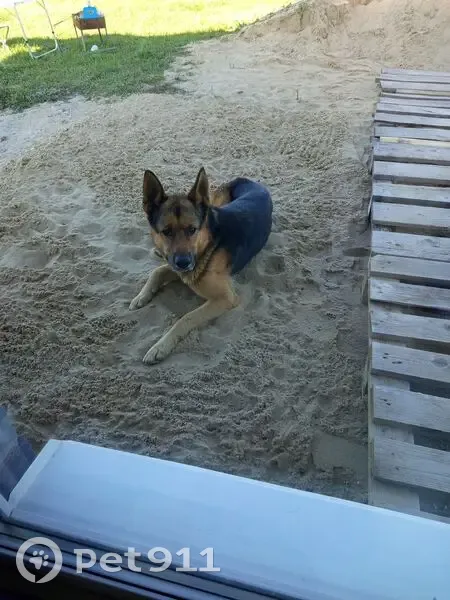 Это немецкая овчарка рыжего окраса с зелено-коричневым ошейником. Откликается на кличку граф! На левой лапе у неё была рана. Собака домашняя, знает команды. Скорее всего, раньше она жила в доме, потому что просится туда, скучает по своим хозяевам и любит, когда её гладят. Предпочитает мясо, а также сухой корм.