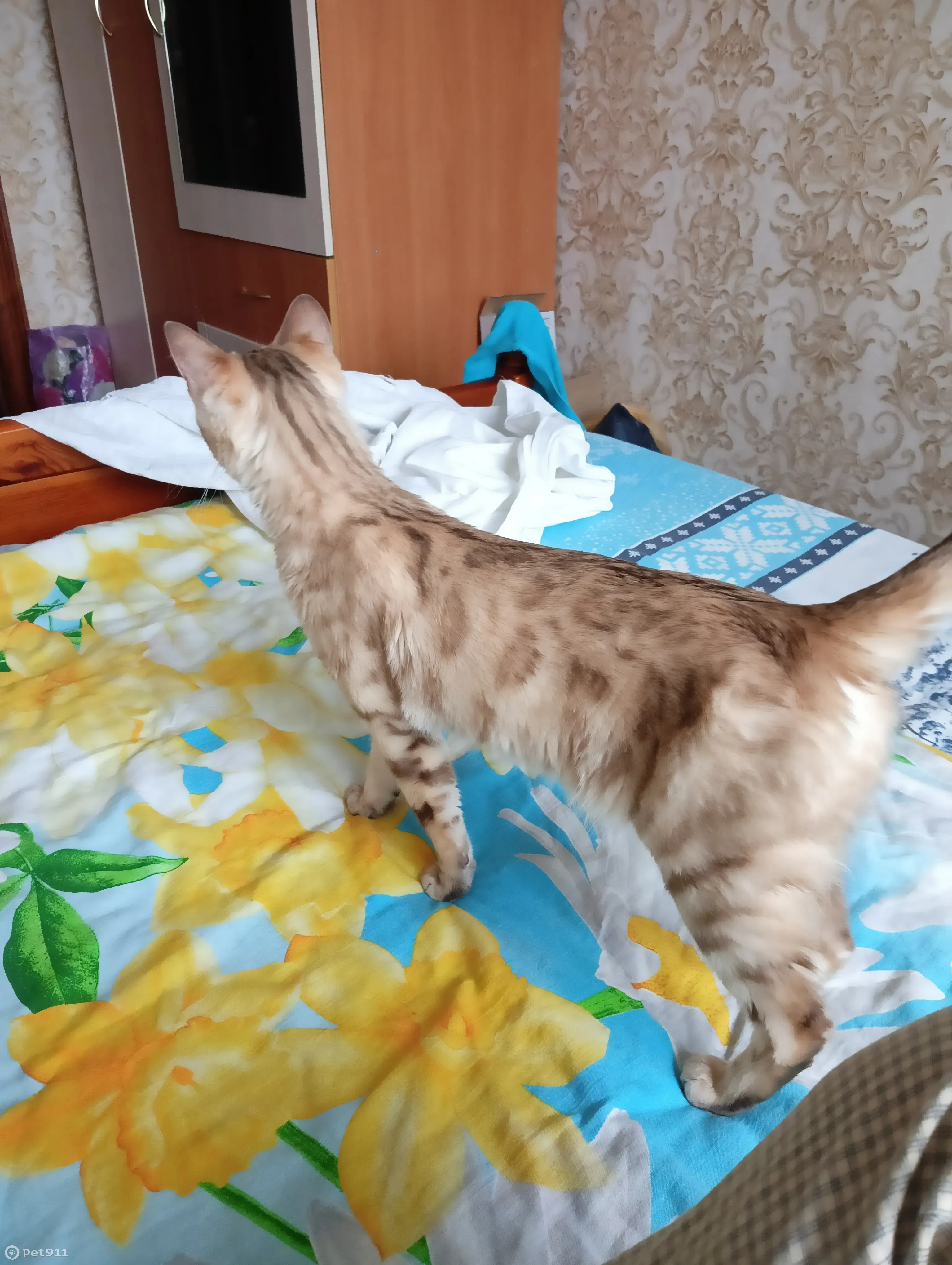 Потерялся кот, без ошейника, ростом со взрослую кошку, но по факту котёнок. В руки посторонним не дается, только членам семьи. Окрас леопардовый, золотисто - коричневый.