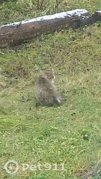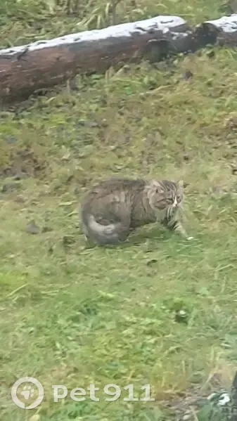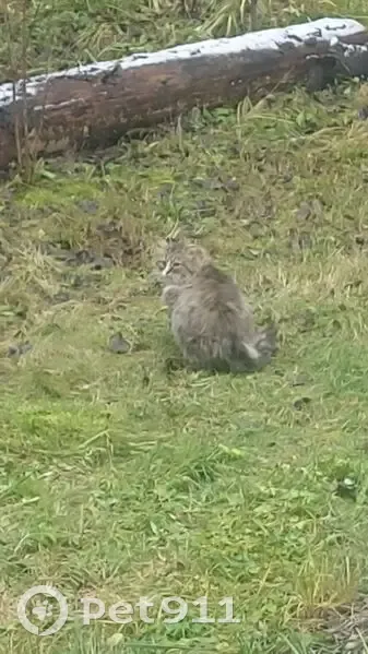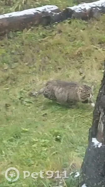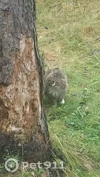 Приблудился кот, пушистый, белая грудь, белые лапы, черный ошейник. Писать в сообщения