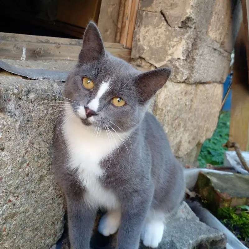 Животное худое, с впалыми боками. Видно, что было домашним, но на улице, судя по всему, несколько дней или более. После кормления идет на контакт, ластится.