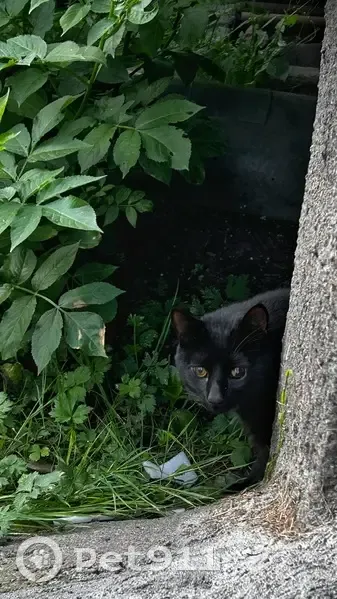 Шерсть черная чистая, упитанный. С глазом какая то беда. Очень пугливый, других котов в раз меньше его и тех боится. Есть идет, когда все разошлись. Постоянно прячется, не уличный точно