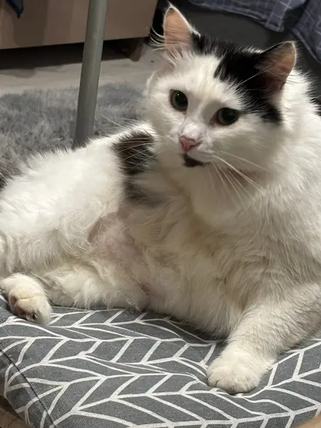 В районе ул. Черепичной появился черно- белый кот ,без хвоста ,крупный как Бобтей. Очень ласковый и человекоориентирован. Присмотритесь, может кому нужен такой красивый котик, на улице красота пропадет!