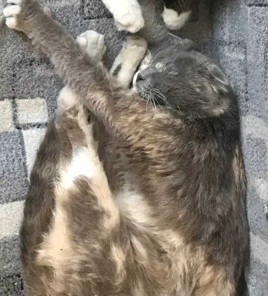 Кошке 3-5 лет, маленькая, вес 2,5 кг. Трехцветная, фенотипически похожа на шотландскую - плоская морда, глаза желтые, ушки маленькие.