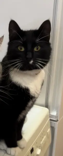 С 15 января был у нас в 3подьезде, очень голодный, имел 2 ошейника -против блох и обычный красного цвета с рисунком лапки, худой, думали кошка, сводили к ветеринару, сказали кастрированный кот, напуган - шипел сильно и рычал, на лоток ходит, явно домашний, сейчас уже ластится об ноги.