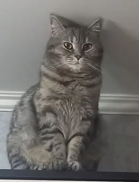 Найдена кошка. Возраст-примерно,1 год, стерилизована, чипа нет. На ней был красно-розовый ошейник от блох. С октябрь-ноябрь 2024 начала появляться во дворах в районе Печатной улицы. В конце декабря забрали в квартиру.