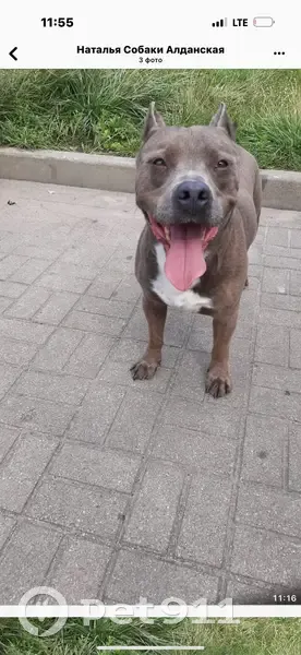 С самого утра 11.08 бегает кобель Предположительно стаффорд/стаффи/пит Коричнево-серый цвет, белая грудь Не агрессивен Бегает с бродячими собаками вместе в районе ул. Алданской 10-36 по Косме. Заберите малыша