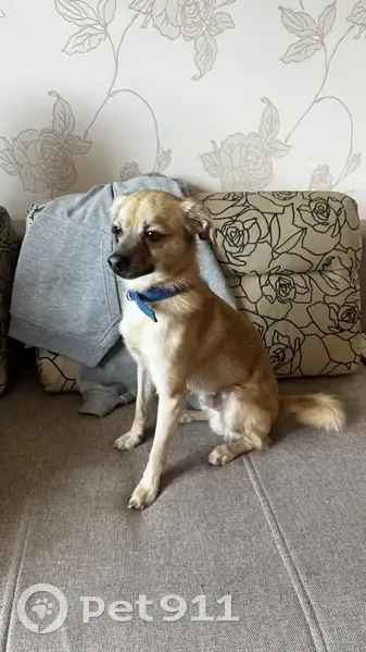 синий поводок, самый обычный. Сидела с утра на парковке, ждала кого-то, никто не пришел, думаем убежал, в группе дома никто не отзывается, не можем держать у себя, у нас собачка дома нервная, буквально ещё пару часов сможет побыть, очень нужно, чтобы кто-то забрал на передержку, он супер добрый, знает все команды, послушный, спокойный, дома не гадил вообще. Спокойно сидит.
