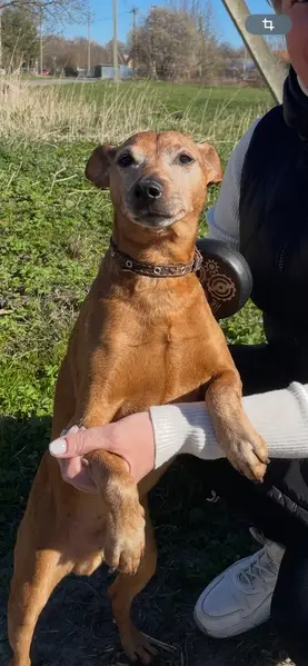 Рыжий маленький пес. Шлейка, синяя рулетка. Целый день просидел привязанный на морозе у магазина Эконом по ул. Карташева (Косма). Сейчас на передержке. Надеемся найдется старый, а лучше новый ответственный хозяин.