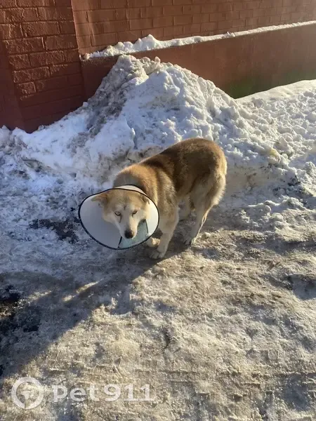 Около 14:30 встретили собаку, она зашла на территорию военторга ул Черепичная. У собаки разные глаза и воротник, отмерзли лапы от холода. Возможно она где то там живет и вышла погулять, но может и кто потерял.