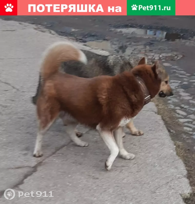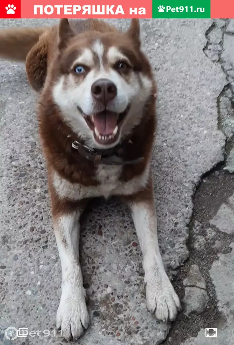 Бегает на территории базы юный кобель Хаски. На нем широкий ошейник коричневого цвета. У пса разного цвета глазки. Пес пытается подбиться к местным уличным собакам, но те с ним грызуться. Собака в опасности быть подратым.