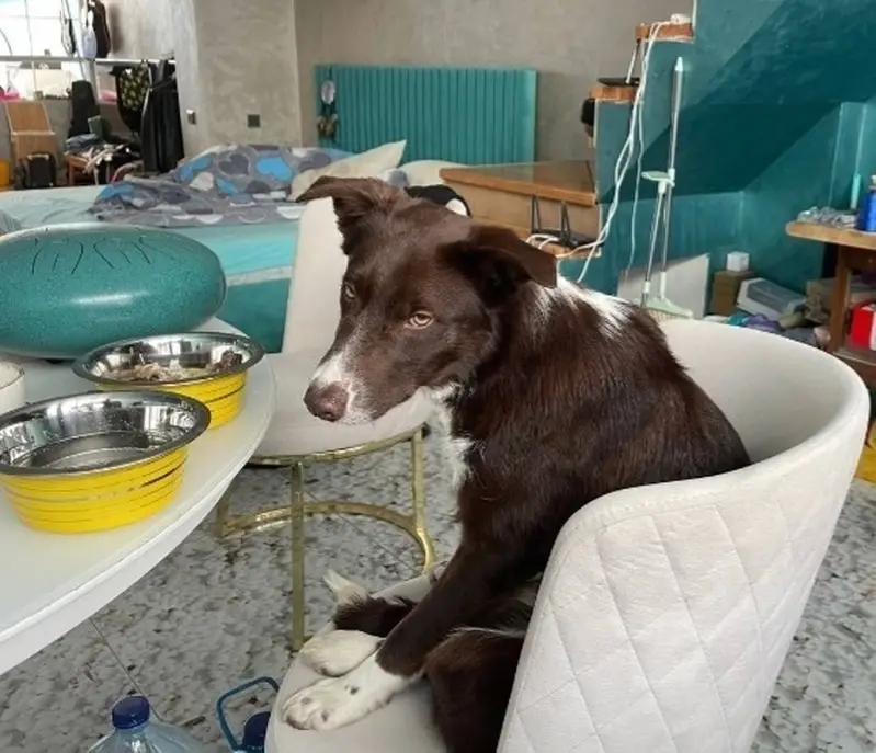Сука, молодая, дворняга, черный окрас, белые передние лапы