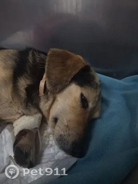 Черно-рыжий, с белыми подпалинами. В пределах 2 лет. Имеется ошейник от блох бежевого цвета. Подобрали в районе между Космой и Чкаловском. Предположительно сбила машина, животному оказывается медицинская помощь. Звонить по +7(905)241-40-11 Ковалева Евгения Юрьевна