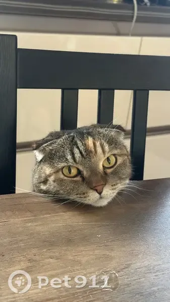 Вислоухая, но беспородная. Серо-коричневая с полосками и пятнами. Скорее всего ушла через мансардное окно на крышу. Мы очень надеялись, что, возможно, зашла к соседям. Расклеили объявления, но увы Вокруг дома тоже искали. Она не контактная к чужим, спокойная, не агрессивная.