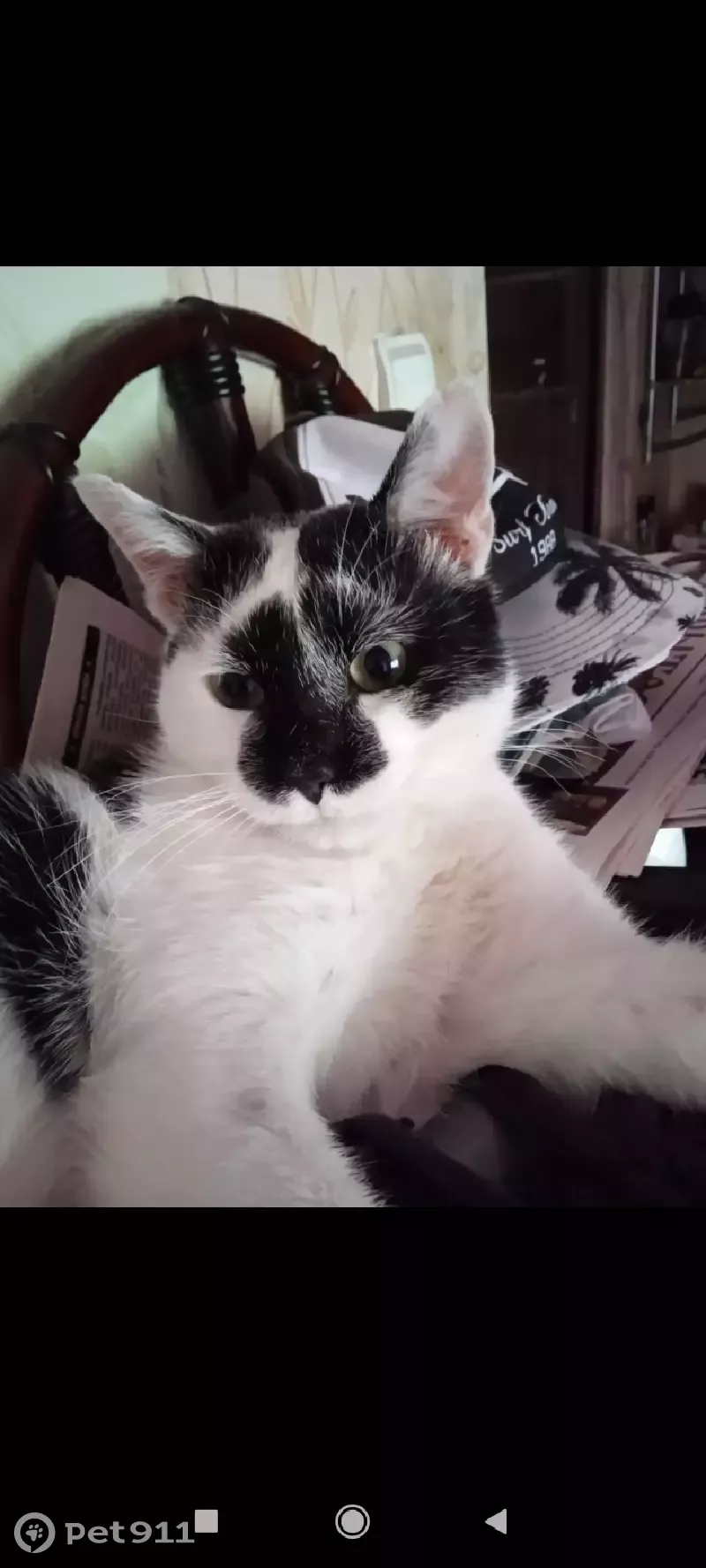 Кот не породистый(простой). Окрас чёрно-белый. На левом ушке чуть-чуть порвано ( от драки с котами). На фото сразу видно примета на мордочке и нтересный окрас. Кот пошёл погулять. Он ходит на улицу в туалет. Всю ночь его не было. Такого не было никогда!!!!! Он всегда приходил домой. Вот до сих пор его и нет.
