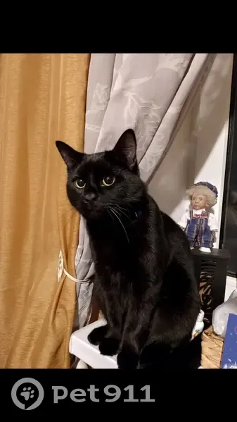 Пропал черный котик(на вид около годика,звать Мася).Был одет синий ошейник с номером телефона.В районе Ленинский проспект 83(гулял во дворе) Если кто видел,позвоните за вознаграждение!!!89506736399
