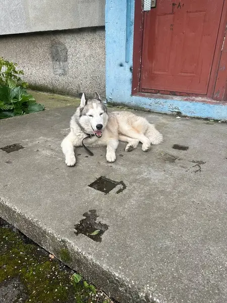 Хаски был около охранной будки (рядом есть выход на набережную), где строят детскую площадку. Охранная будка находится на ул. Курортная 3Г.