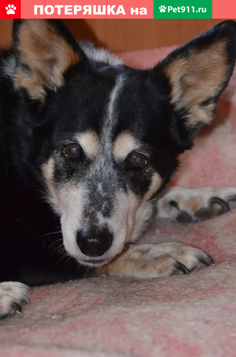 Черная сука среднего размера с бело-коричневой мордочкой, грудкой и лапками. Упитанная, порода похожа на корги - коротколапая. Зовут Дина, но в силу возраста плохо слышит, поэтому может не откликаться. Видит тоже плохо, глазки мутные. Бывает очень пугливой. Из особых примет - краюшек одного ушка слегка наклонен, т.к. ушко неправильно срослось, но это скорее можно определить на ощупь. Пожалуйста, если увидите ее, позвоните по тел. 89506780050 или 89217115156