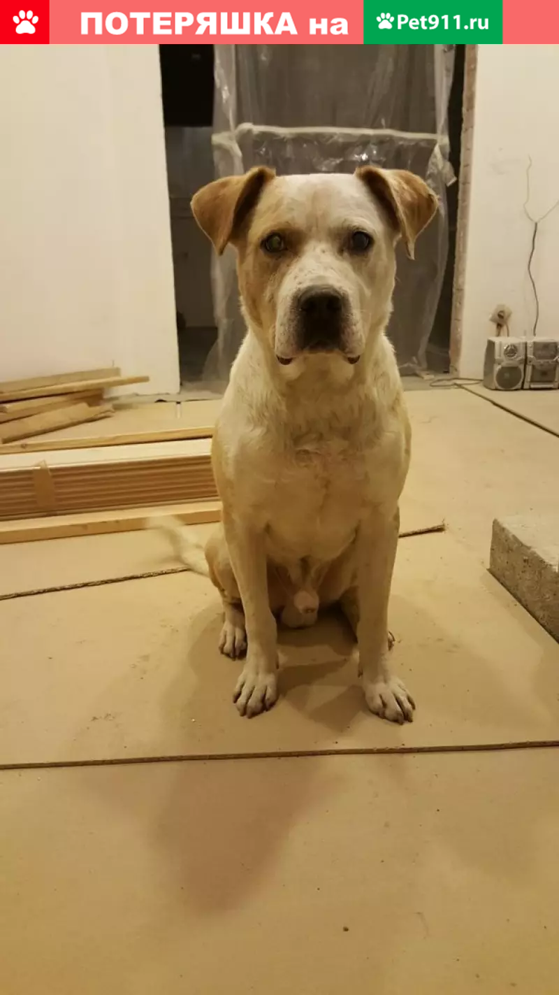 Кобель. Большой.не агрессивный,помесь стафа и дворняги скорее всего.