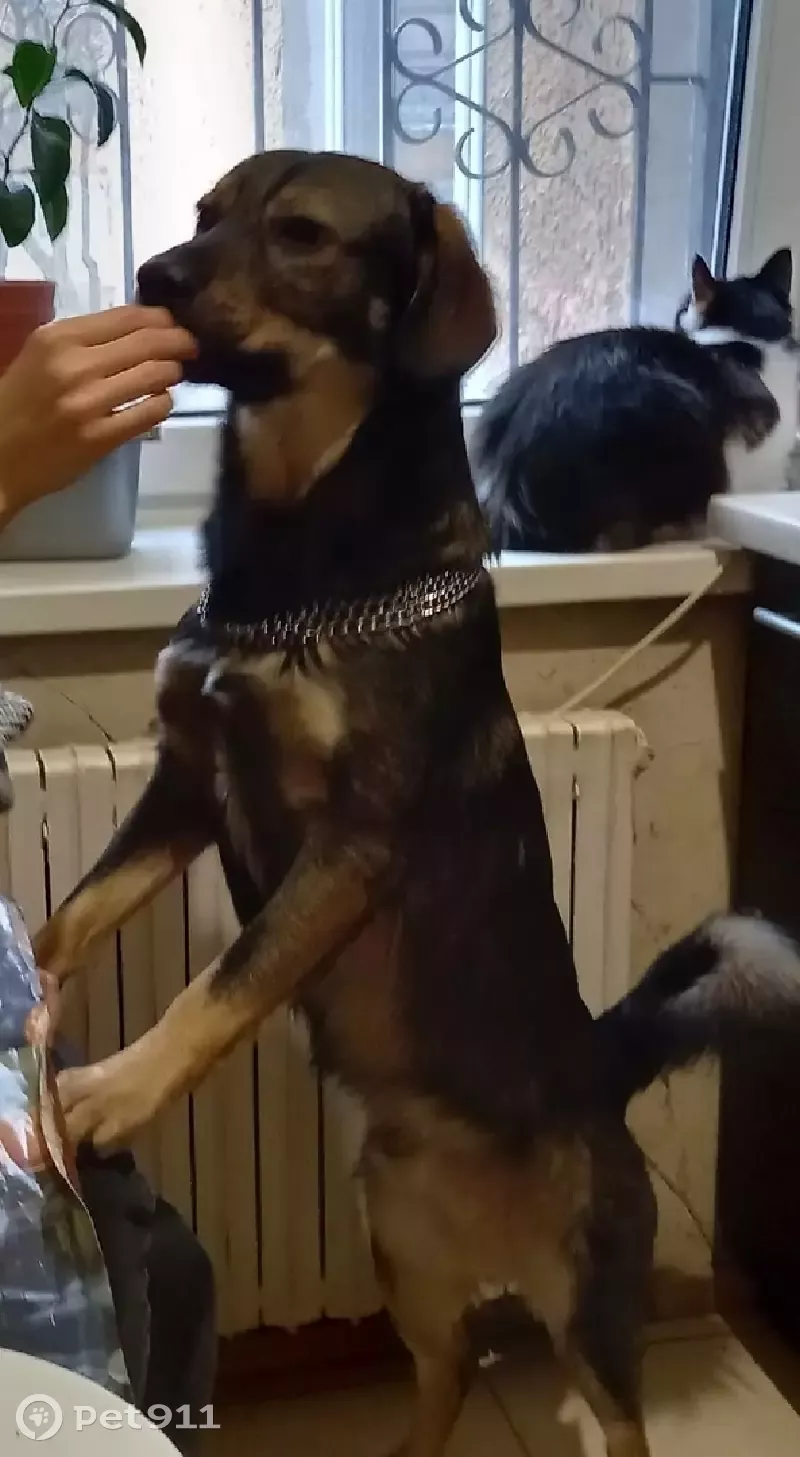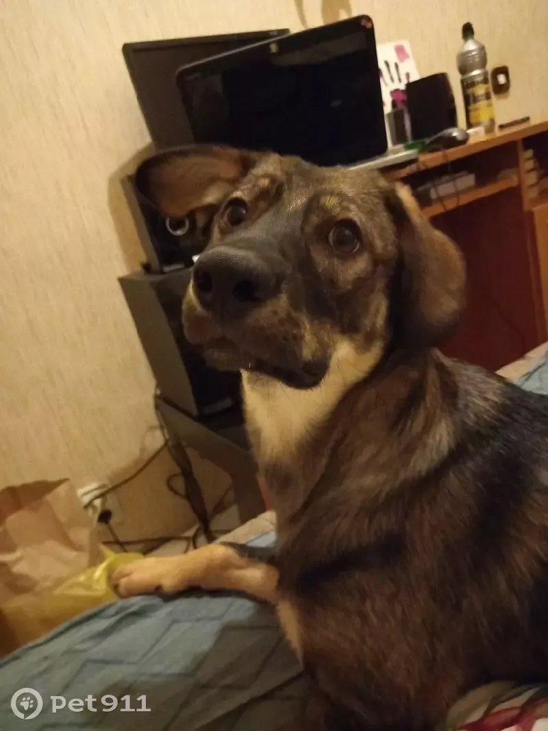 Порода дворняга, на нем был коричневый ошейник, боится машин, людей. Откликается на кличку Челси, убежал из дома. Белое пятнышко на груди. Всегда стоит одно ухо.