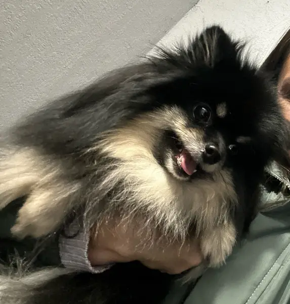 Черно белый, сорвался с привязи, с ошейником и поводком