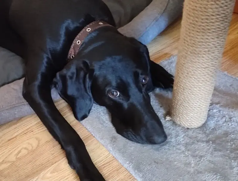 Пёс похож на лабрадора(метис) днём бегал в ошейнике, а сейчас уже без него.