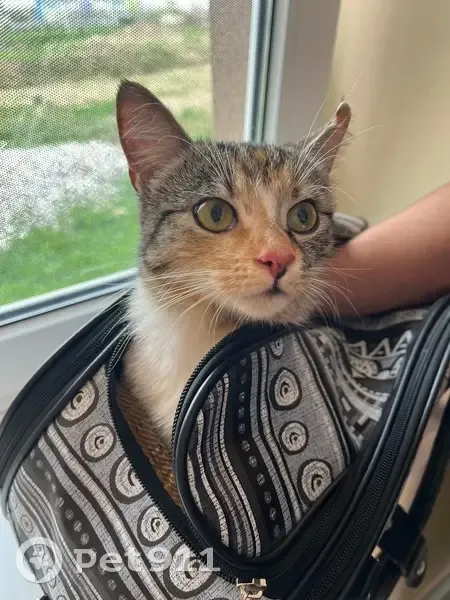Кошечка. Меньше года. Трехцветный окрас – полосатое тело, белые лапки и грудка, оранжевая мордочка. Есть шрамик на левом ушке. Потерялась в районе Новой Резиденции.