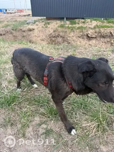 на вид лет 5, не агрессивен, был в районе залива в 5 часов дня, дошёл с нами до нового голубева, последний раз видели в новом голубево в 19:10. В чёрно красной шлейке. Чёрный лапки белые