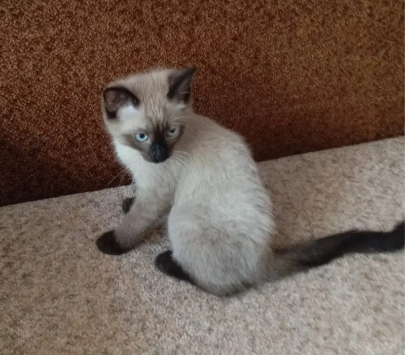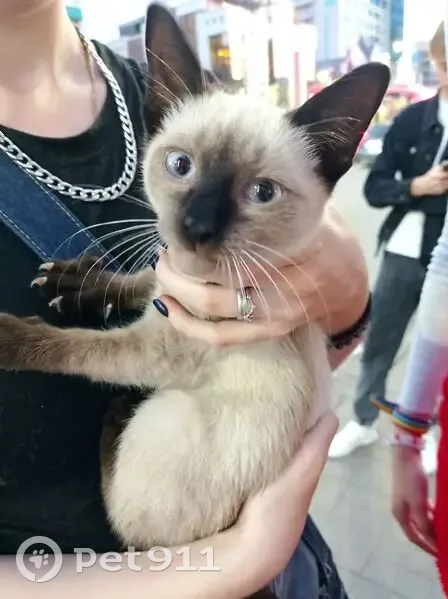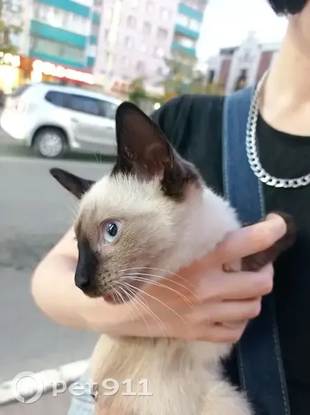 Котёнок 3 месяца. Сиамский, чистый. На улице видимо не пробыл и дня. Ветеринар сказала что здоров. Вытащили из род капота машины. Откуда приехал неизвестно.