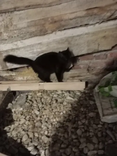 Молодая кошечка ласковая полностью черная хвост пушистый