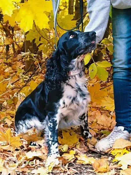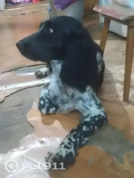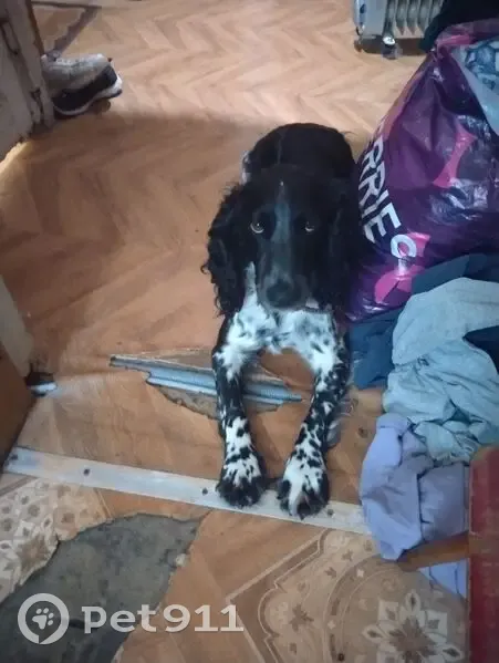 Найдена собака, мальчик, хвост купирован. Был в брезентовом зелёном ошейнике (пока побегал- уже снять успели, фото с моим ошейником) Русский спаниель. Ухоженный, видно, что бегал по улице мало. Недалеко от СНТ Ветеран