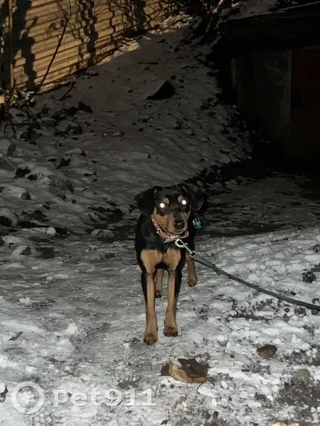 Найдена собака, привязанная около гаражей. К себе не подпускает. С ошейником, игрушкой, пакетом еды. Чистый, ухоженный пес. Срочно нужна помощь