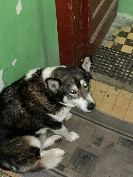 В окрестностях домов ул. Никитиной 31, 39 и др. Бегает потерявшаяся собачка, похоже на суку, но не удается осмотреть. (Почти 2 недели собака кружит вокруг нашего дома, пытается зайти в подъезд. На ней брезентовый ошейник и кусок карабина от поводка (оторван). Судя по окрасу, густоте шерсти, куску белого клыка (больше не видно) – возраст 4-5 лет. Похожа на метиса хаски. Хозяин, твой пес скулит и ищет свой дом, позвони!