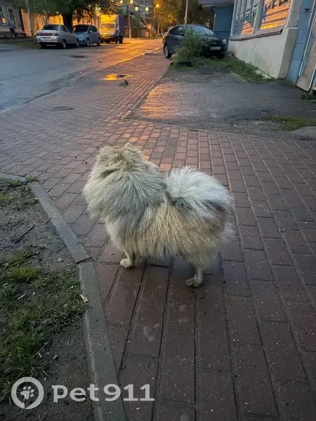 Шпиц, светлый окрас. Я увидела эту собаку на Тульском переулке, меня смутило то, что грязный шпиц гуляет один. Прохожие сказали, что собака уже пару дней тут ходит.