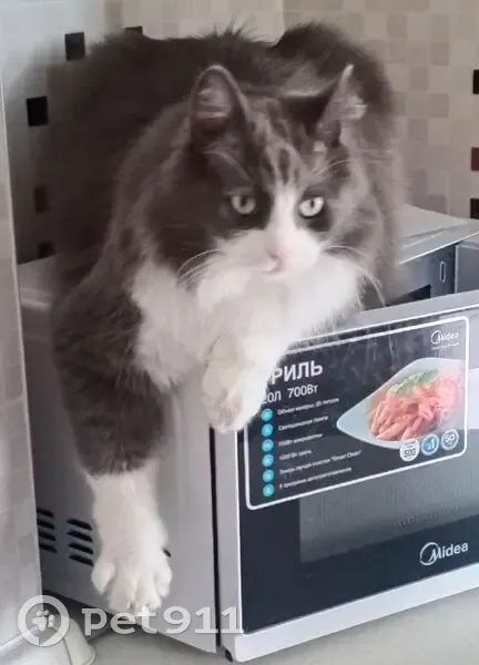 01.08.2025 вечером потерялся кот, домашний, пугливый. Кличка Барон. Окрас - серо-белый, без породы, но похож на норвежскую лесную. Пушистый, розовый живот. Отсутствует правый клык.