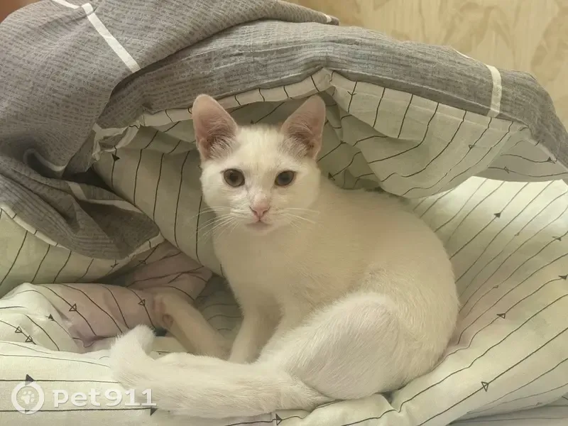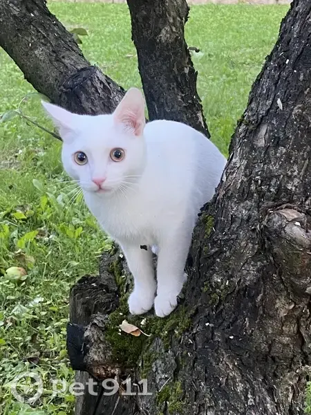 Полностью белый котенок (6 месяцев) не породистый и не кастрированный, светло-карие глаза, розовые ушки и нос. 24.09.25 в 07:30 вышел на улицу и не вернулся.