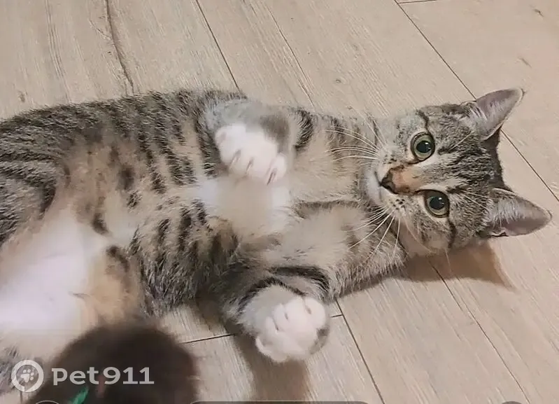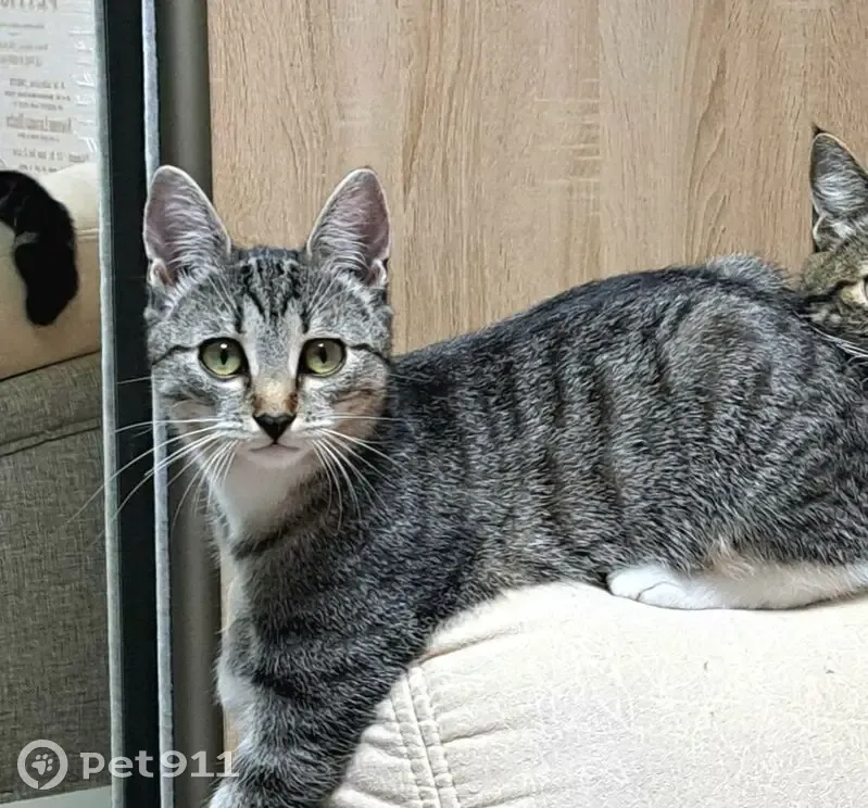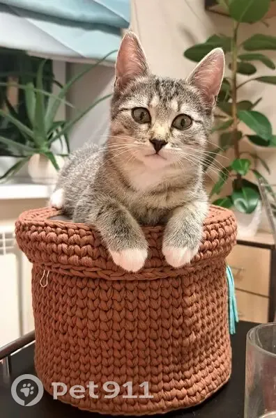 Кошечка, 6-7 месяцев Серенькая-полосатая, гладкошерстная, с серым носиком, на передних лапках-носочки, на задних лапках-гольфики Кошечка выпала с окна. Контактная (если конечно не прибывает в шоке после падения), "разговорчивая " (особенно если что то выпрашивает), игривая, жизнерадостная. Откликается на имя "Буся" или "Бусинка"