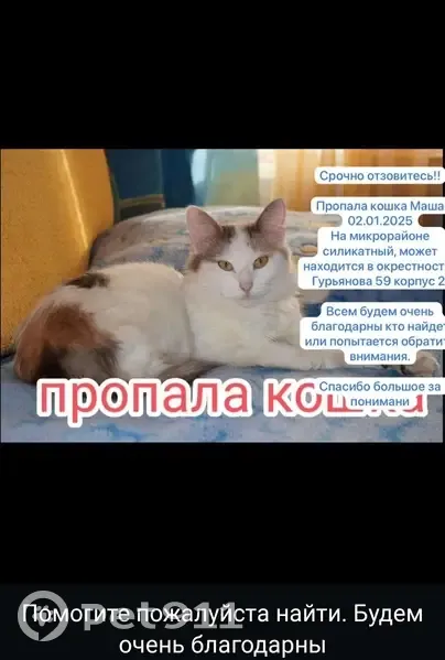 Объединено с объявлением rl946838. Причина-дублирование информации. Описание дублирующего объявления: Выбежала из квартиры утром. До 15.00 находилась в подъезде. Сама белая, ушки и хвас трёхцветные с правой стороны на спинке серое круглое пятно.