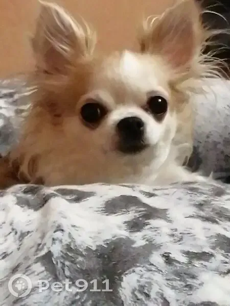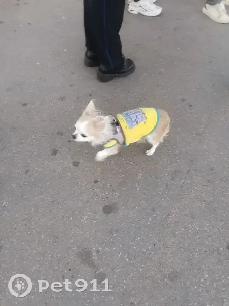 Рыжий-белый, чихуахуа маленькая, длиношерстная, была одета в ярко жёлтую футболку, поверх серая шлейка, очень ласковая, не агрессивная не кусается и не гавкает Собака пожилая 12 лет, требуется специальный уход и корм Малышка член семьи, очень скучаем и ждём, ищем ежедневно