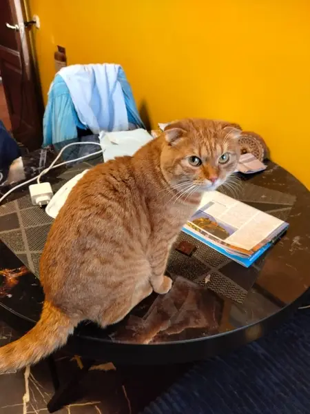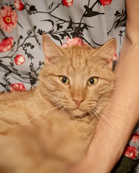 Рыжий крупный кот. Чистый. Знает лоток.Очень ласковый.