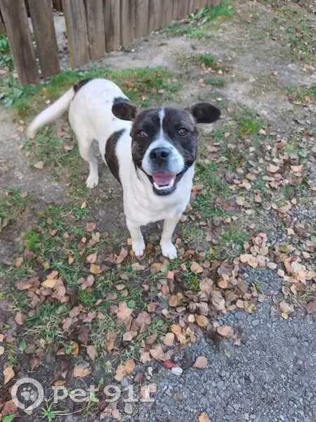 В поселке бегает этот пёс. Появился в мае, был с ошейником, потом вероятно потерял или кто то снял! Пёс добрый, знает команды, умный. Живёт в поселке пока есть люди и его кормят. Скоро зима.