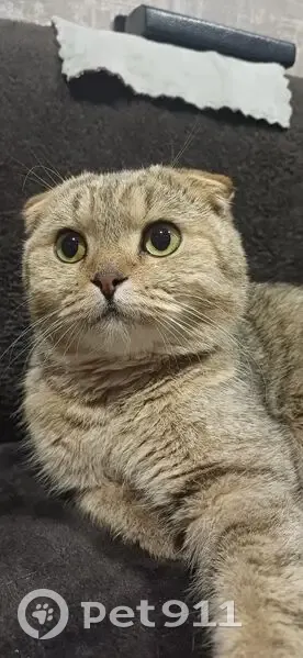 Коричневый, полосатый, лалки черные. Животик бритый, недавно кострированный, пугливый, в руки не дается. Убежас с участка, искали по всему СНТ - безрезультатно.