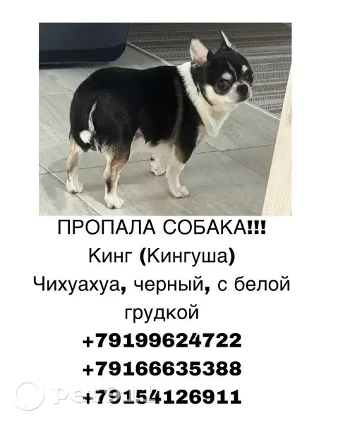 На даче испугался взрывов и выскочил с участка через соседей. Может быть агрессивный, но устал и много бегал (по словам людей, которые его видели). Откликается на «Кинг», «Кингуша» 89199624722 89166635388
