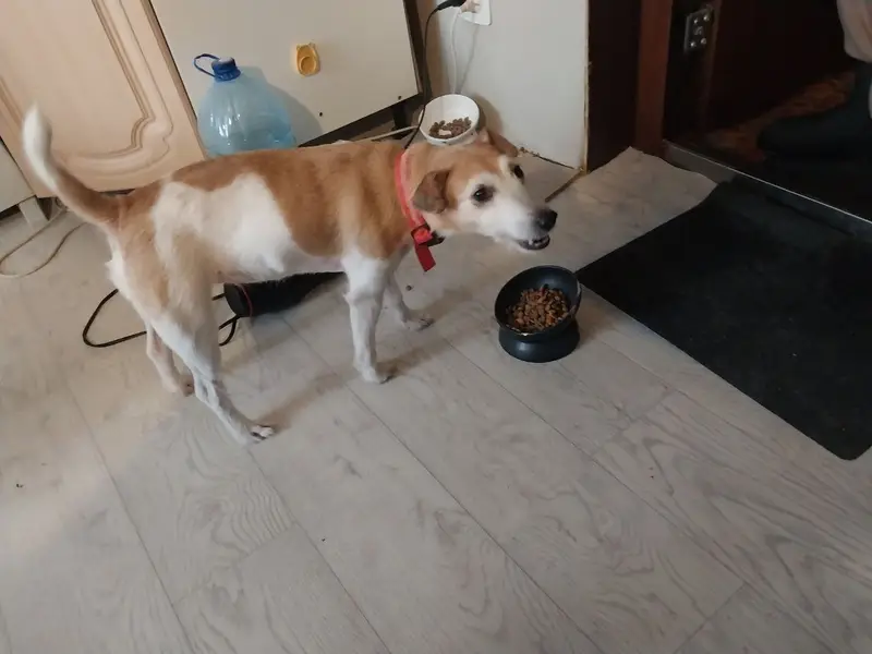 Метис Джек Рассел и дворняги, отзывается на кличку Пит, светло бежевый ошейник, не высокий , по колено. Вознаграждение!!!