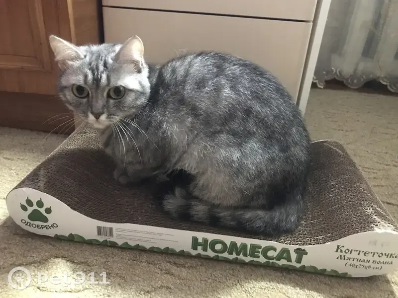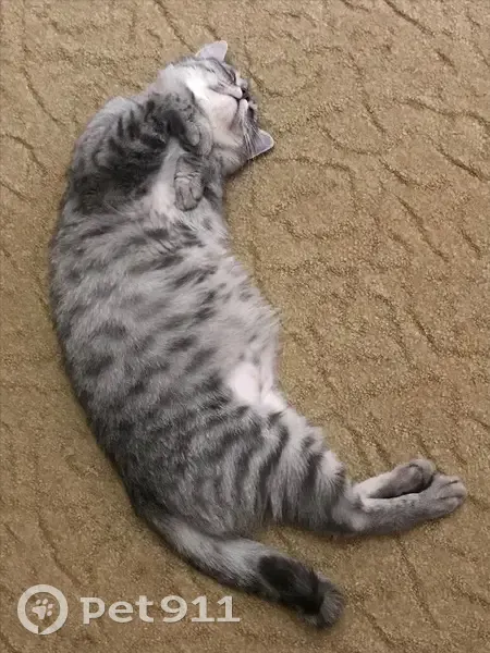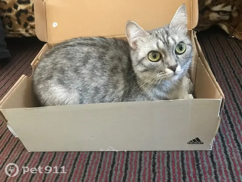 Серая, в полосочку, как на пачке «Вискас». 11 июля выпала из окна второго этажа дома по адресу: пер. Красный,1. Здесь при выборе адреса пропажи не удалось указать точный адрес. Ушки острые, животик светлый. Может быть пугливой и недоверчивой к посторонним людям, так как она домашняя и не гуляет на улице. Ходит на лоток и ест только покупной корм для кошек.